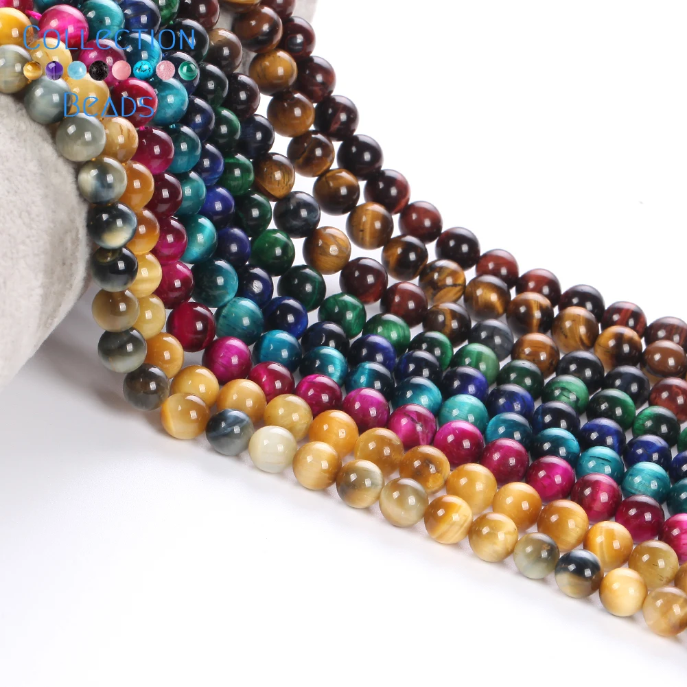 Новое поступление красочные натуральные камни тигровый глаз Свободные Круглые бусины для изготовления ювелирных изделий 6-10 мм DIY Браслеты Аксессуары 15"