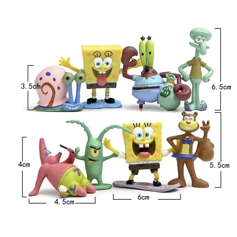 8 шт.компл., Мультяшные кавайные губки, Патрик, звезда, фигурка, игрушки, мультяшная губка, Bobs, фигурка, игрушки для детей, рождественский подарок