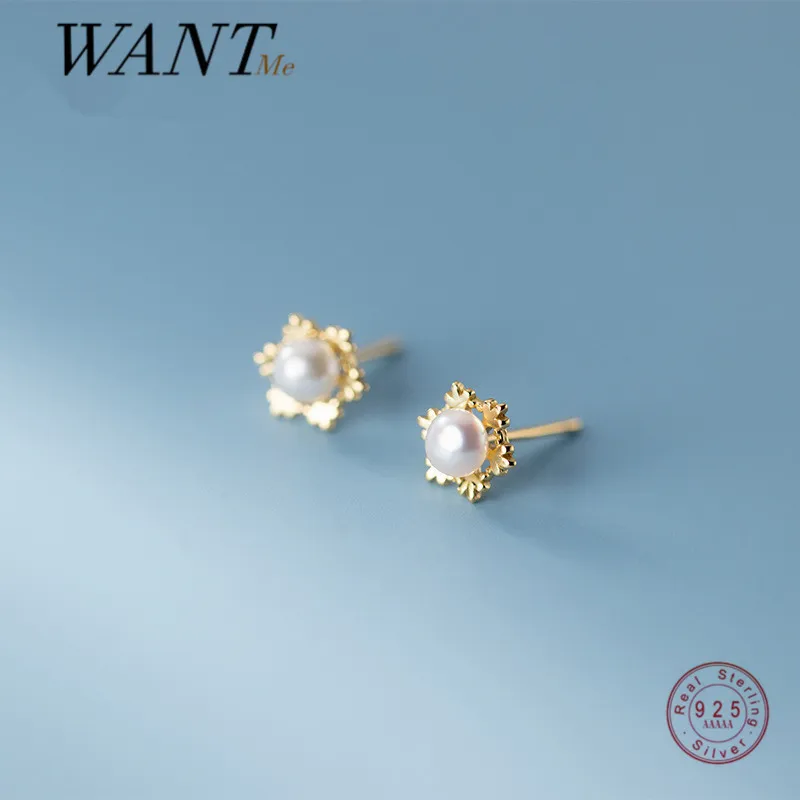 Женские серьги-гвоздики WANTME из серебра 925 пробы, с жемчужинами и снежинками