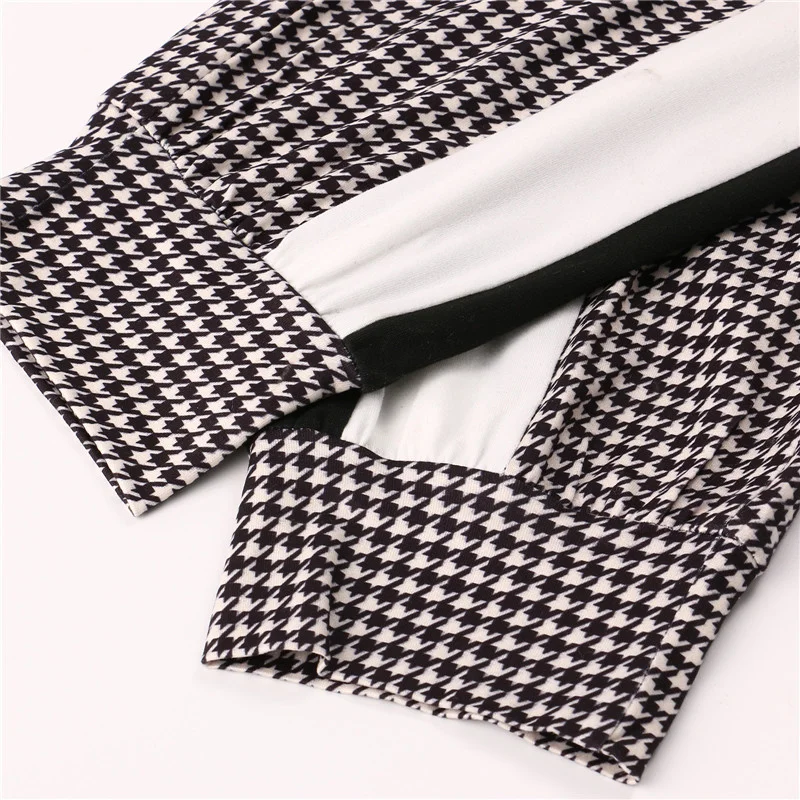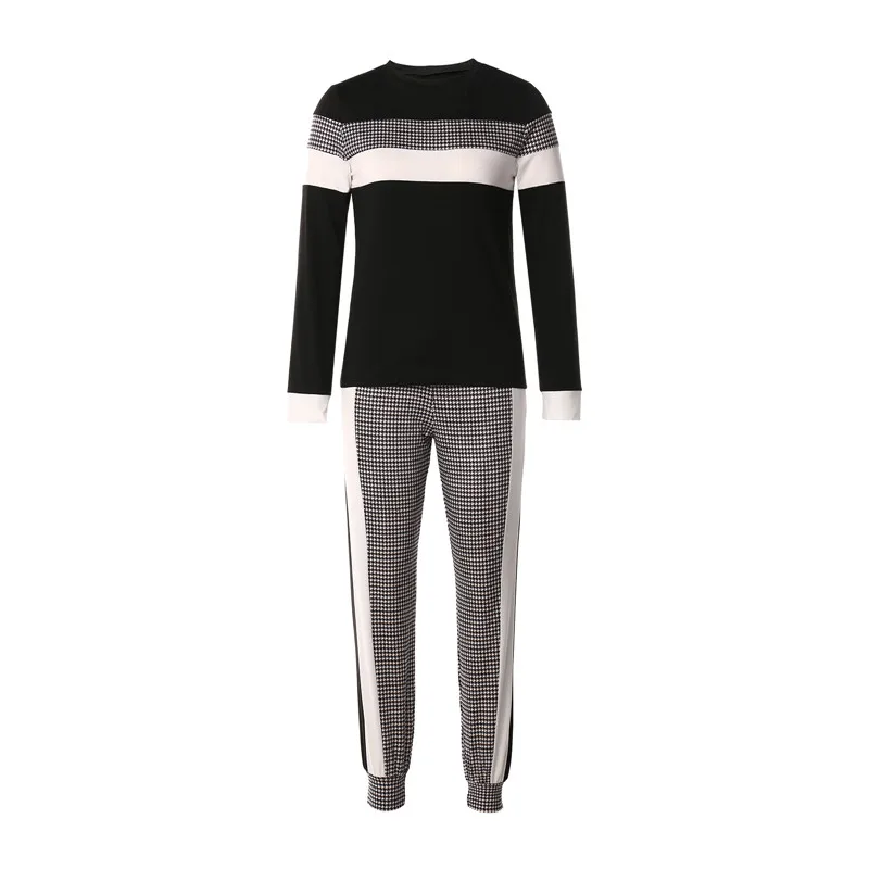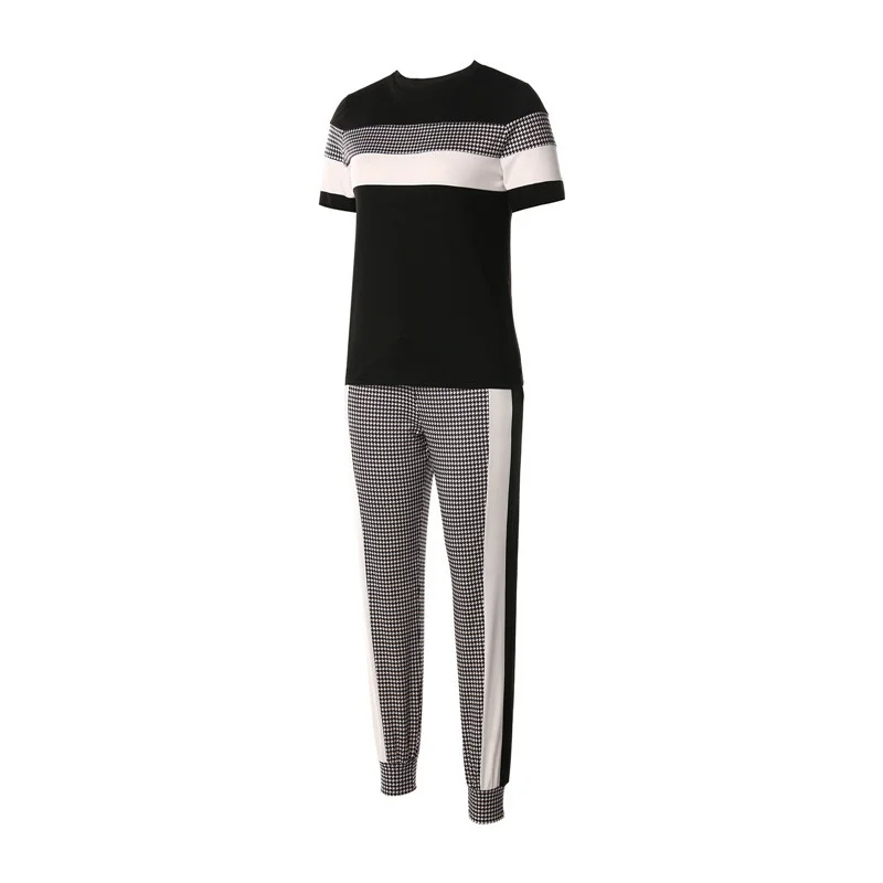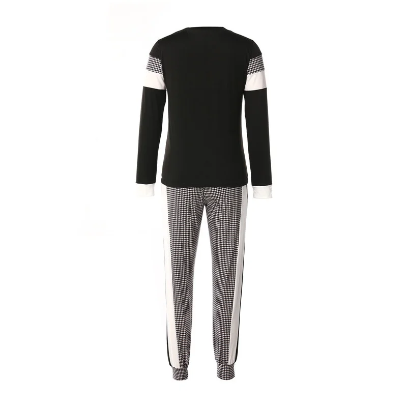 Женский костюм из 2 предметов, пуловер с круглым вырезом с длиннымкоротким рукавом и брюки для лета и осени, черный, SMLXL