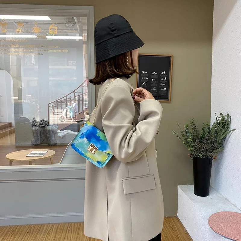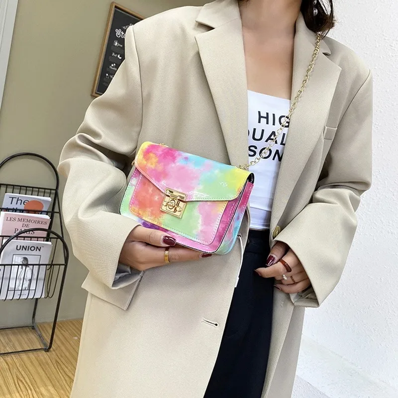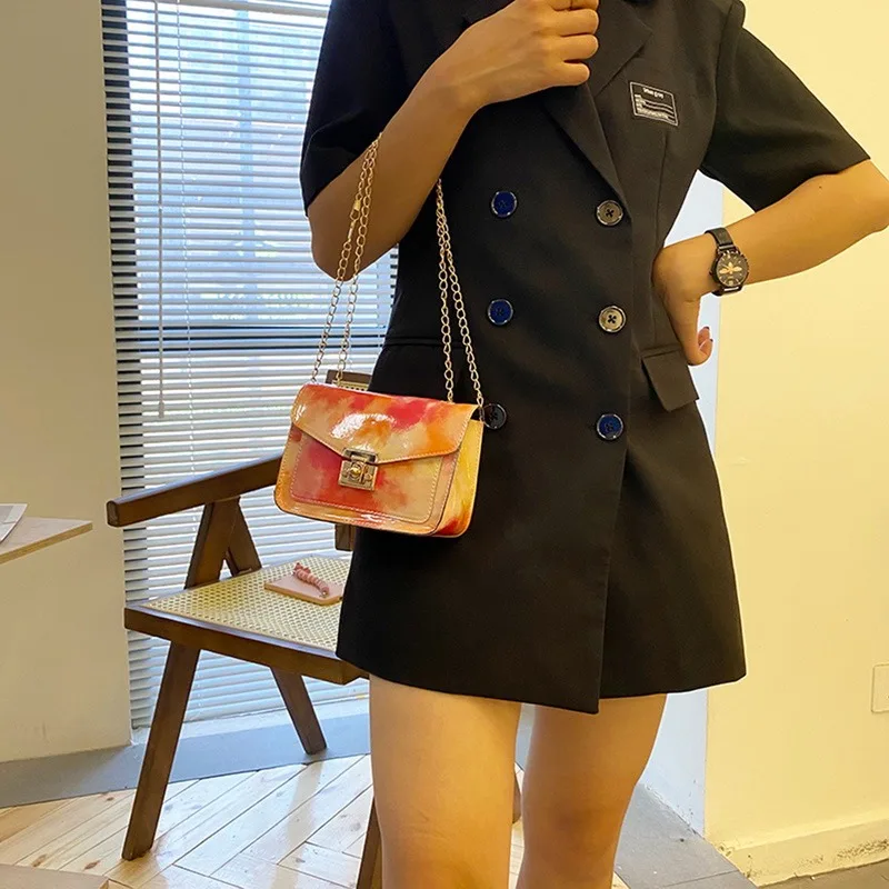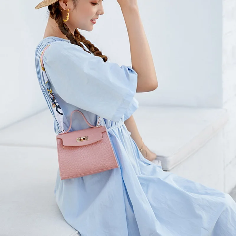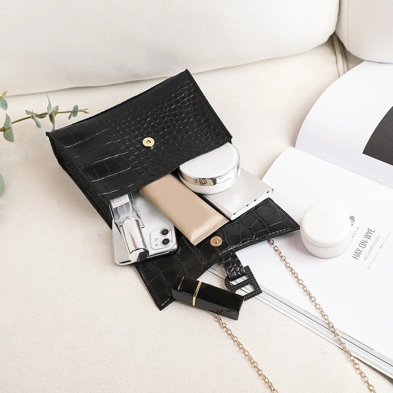 Маленькая квадратная сумка с клапаном для женщин, модная брендовая дамская сумочка из высококачественной искусственной кожи, мессенджер на ремне с имитацией кожи крокодила и цепочкой