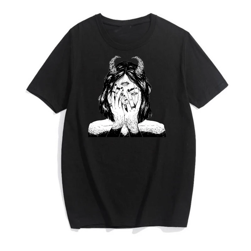 Летняя готическая Черная футболка с надписью сатана, черного дьявол...