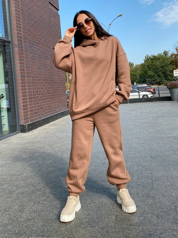 Женский спортивный костюм, спортивный костюм из двух предметов, на флисе, с длинным рукавом, спортивные штаны, зимний, 2021