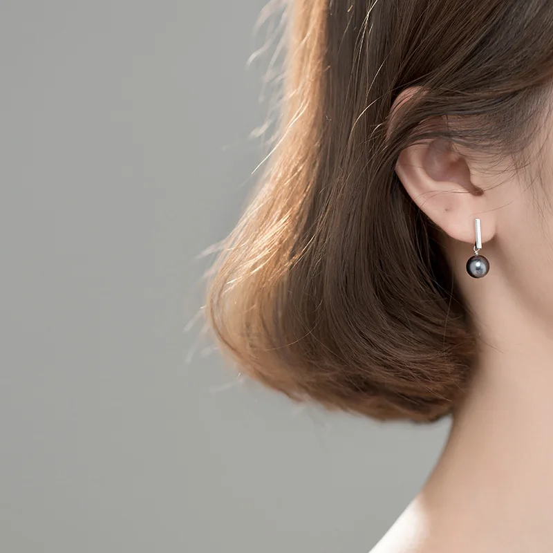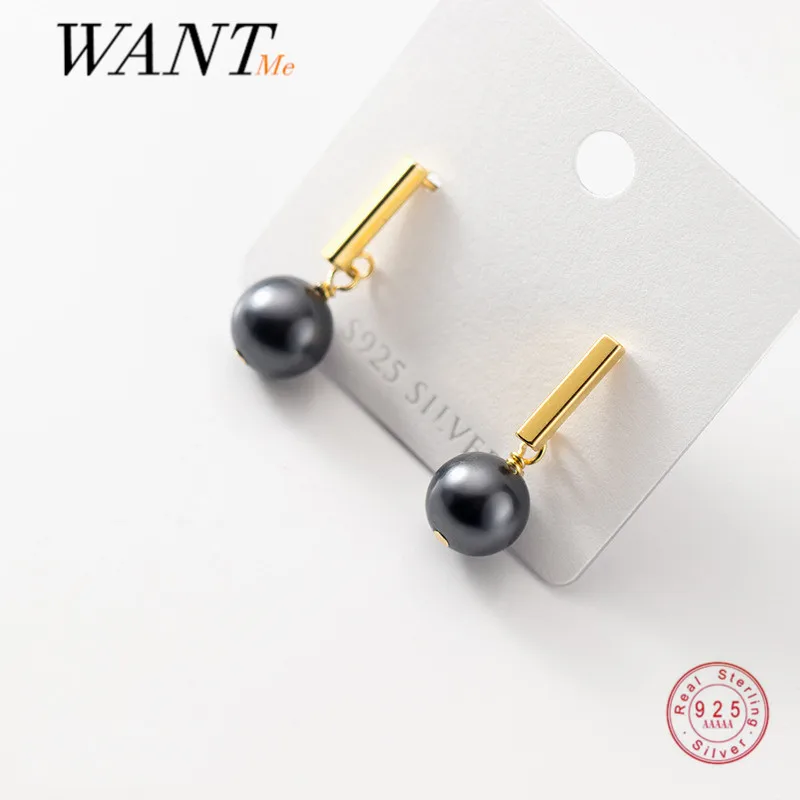 WANTME натуральная 925 Стерлинговое серебро черный круглый жемчуг винтажные свисающие серьги для женщин, в готическом стиле, украшения на свадьбу, годовщину