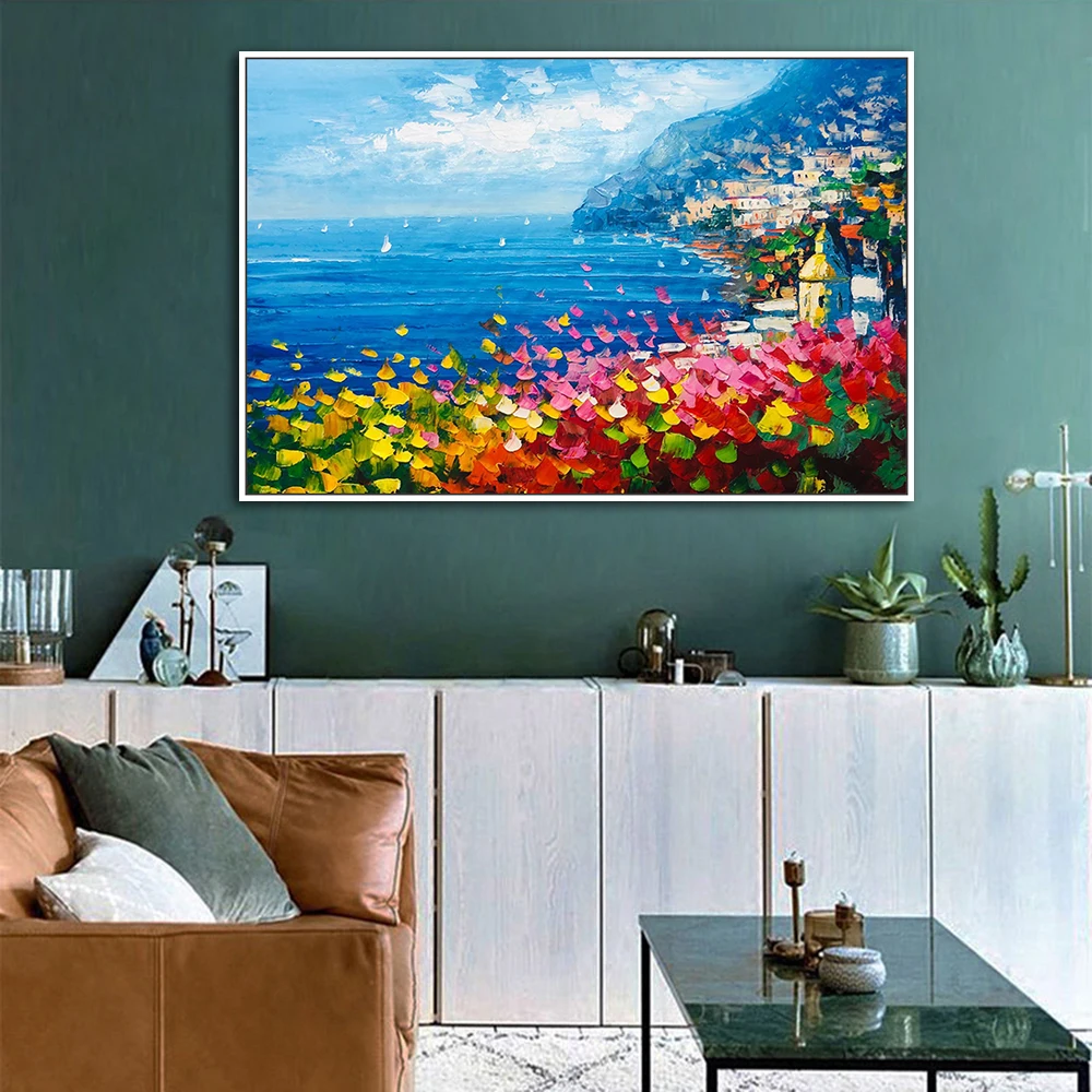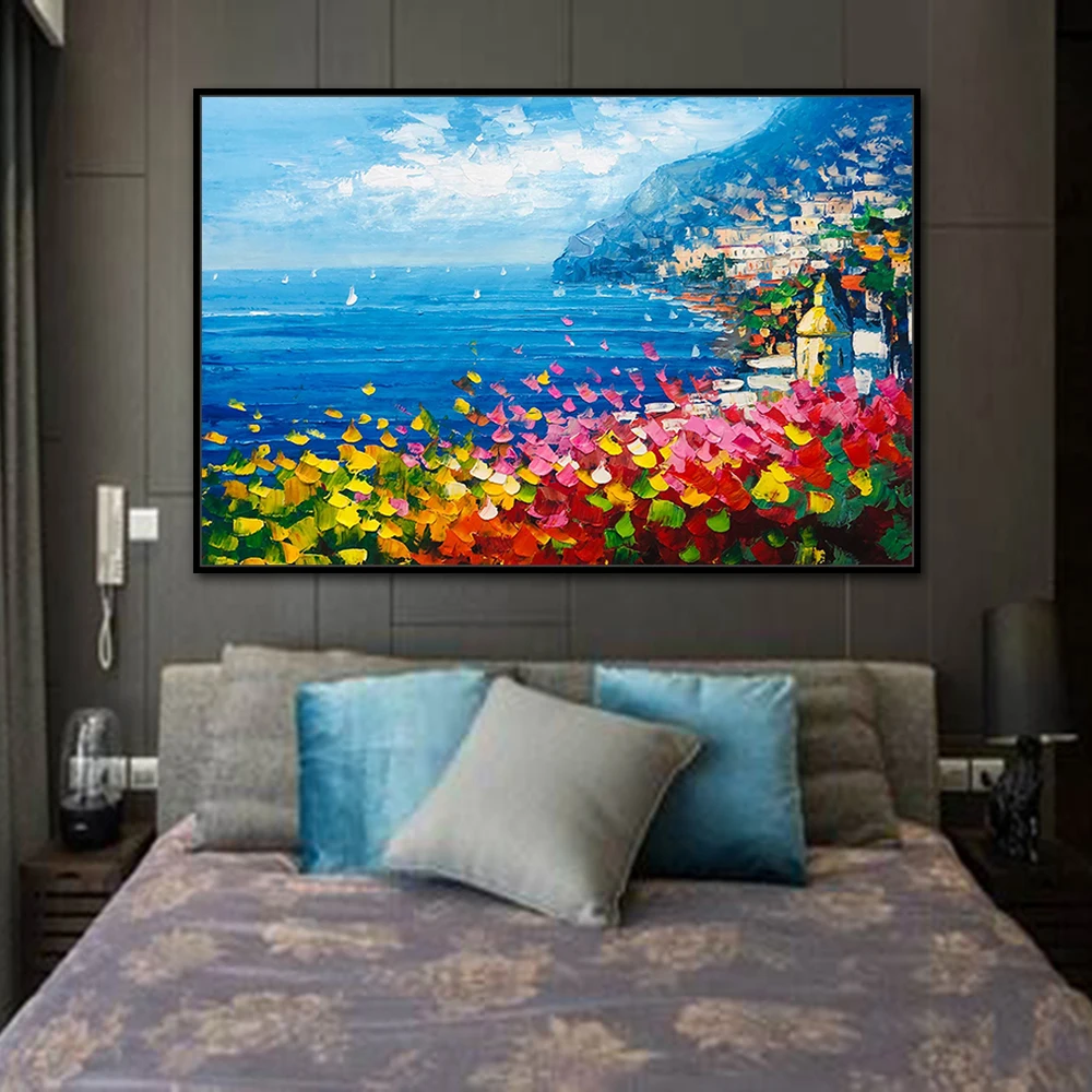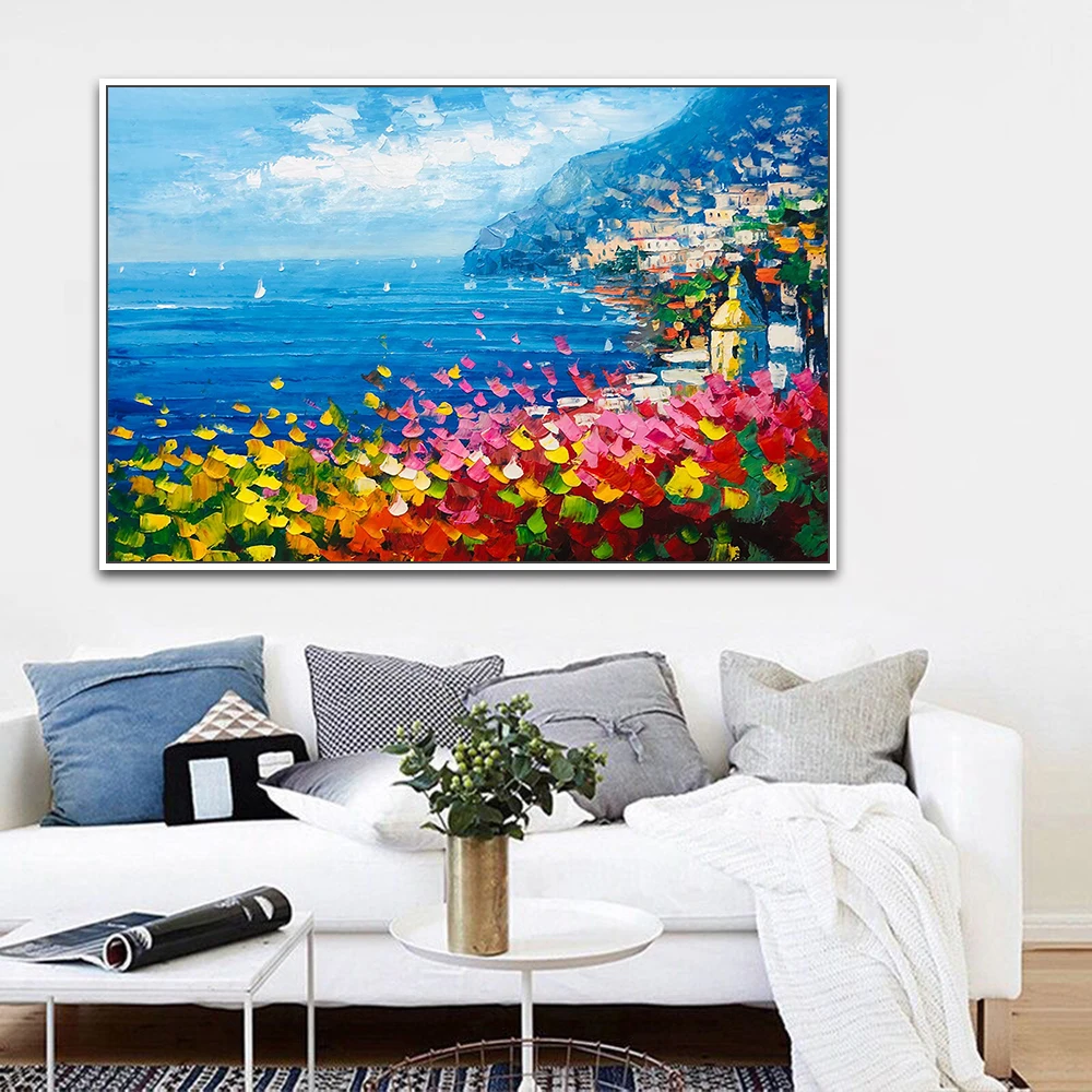 Картина на стену Mintura для гостиной, Масляные картины на холсте, ручная роспись, красивый город у моря, домашний декор, настенная живопись, без рамки.