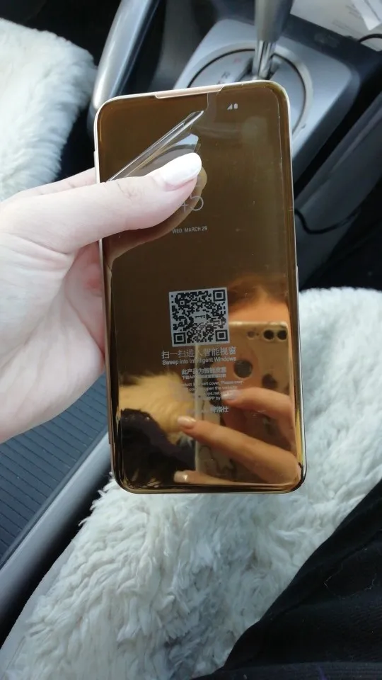 Very beautiful! The screen is translucent. In the closed state, the phone is active. My husband is very pleased! Thank you!