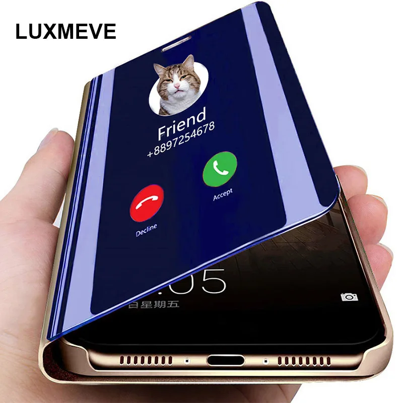 Зеркальный умный чехол-книжка для Huawei P40, P30, P20 Pro, Mate 20, 10, Honor 20 Pro, 10, 9 Lite, 9X, 9A, 9S, 8A, 8X, Nova 5T, P Smart Z 2019