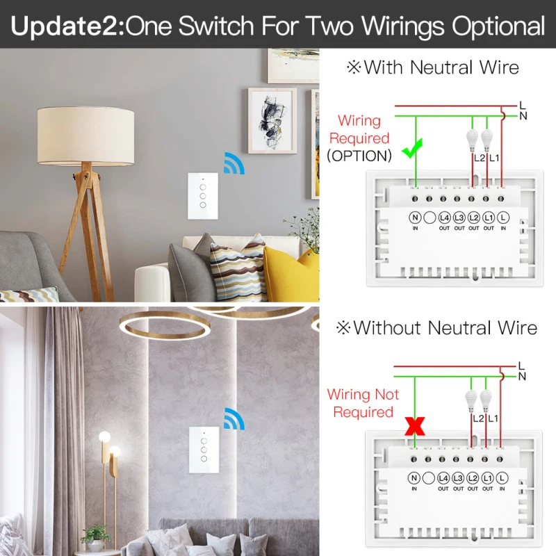 Примечание: если в вашем доме нет нейтрального провода, просто игнорируйте положение N для проводки, и если он есть, Просто проводите его для нормального использования.