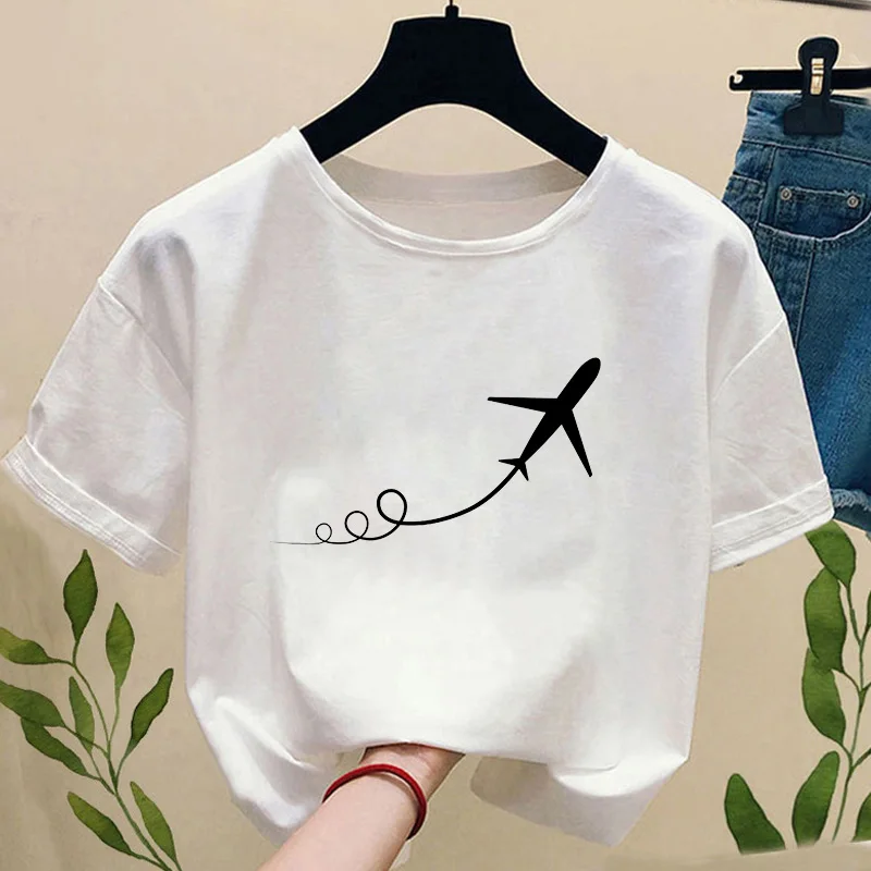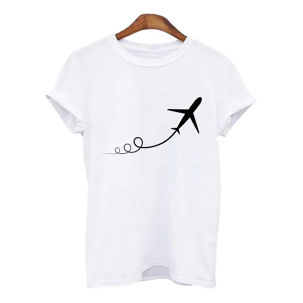 Летняя женская футболка в стиле Харадзюку, футболка с принтом в виде летательного аппарата, женская одежда, летний топ, Модный женский топ