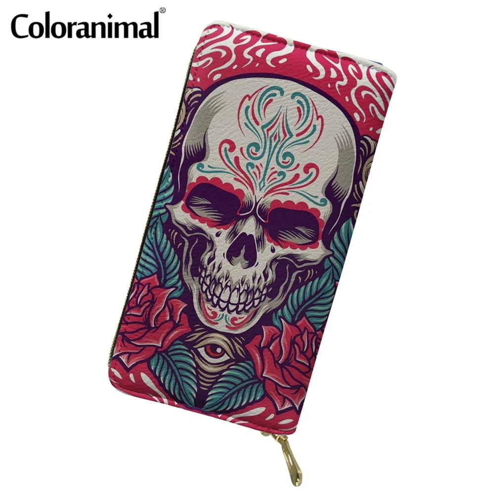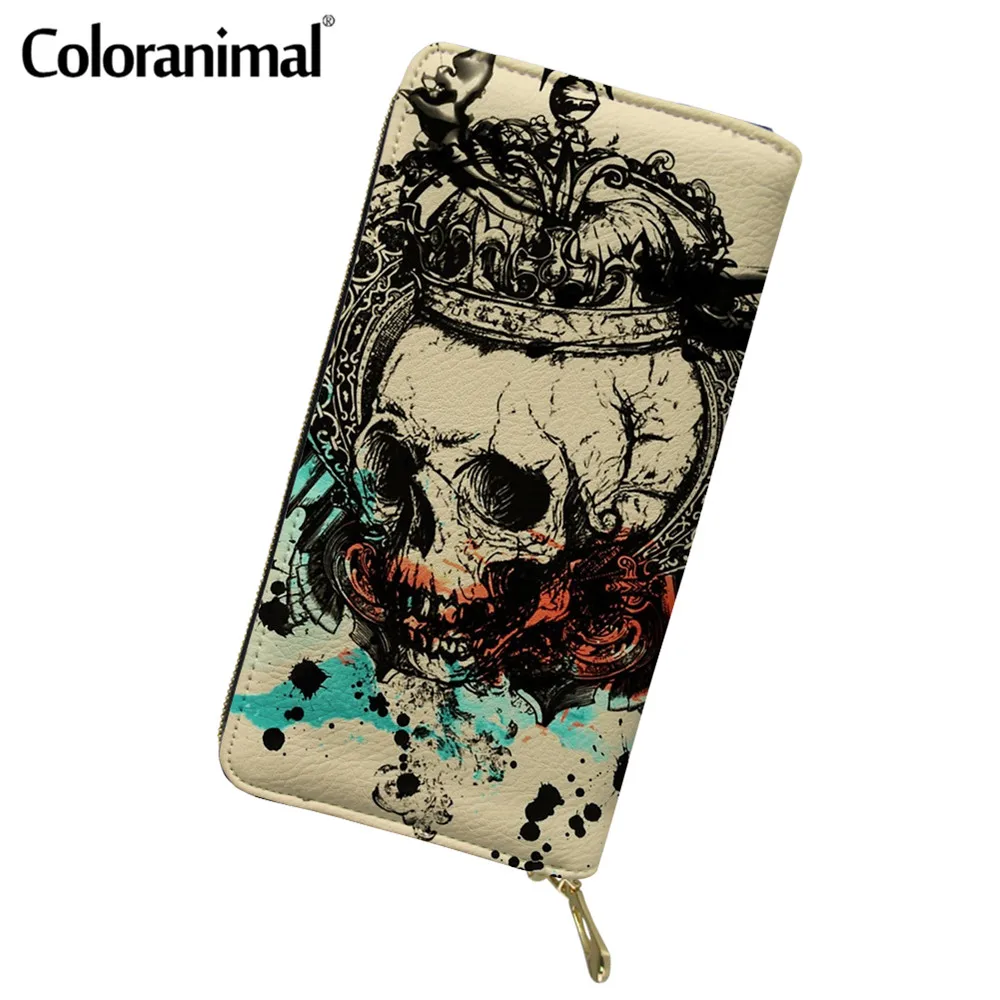 Женский кошелек-клатч из ПУ кожи, с принтом в виде черепа