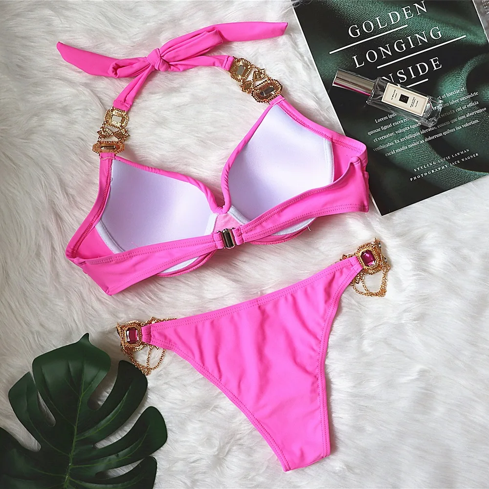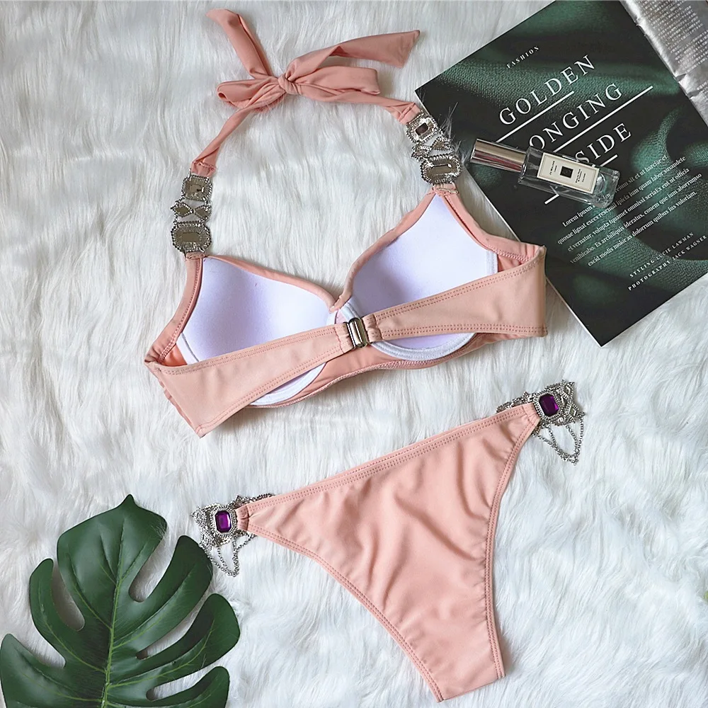 2021 женский сексуальный Хаки халтер Кристалл бриллиант женский купальник бикини женский купальник стразы комплект бикини бразильский купальный костюм