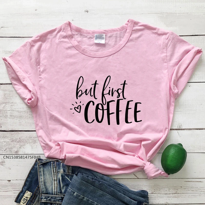 Но первый кофе мягкая Премиум Футболка Забавный кофе влюбленный подарок футболка Повседневная Женская графика кофе одержимая Топ Футболка