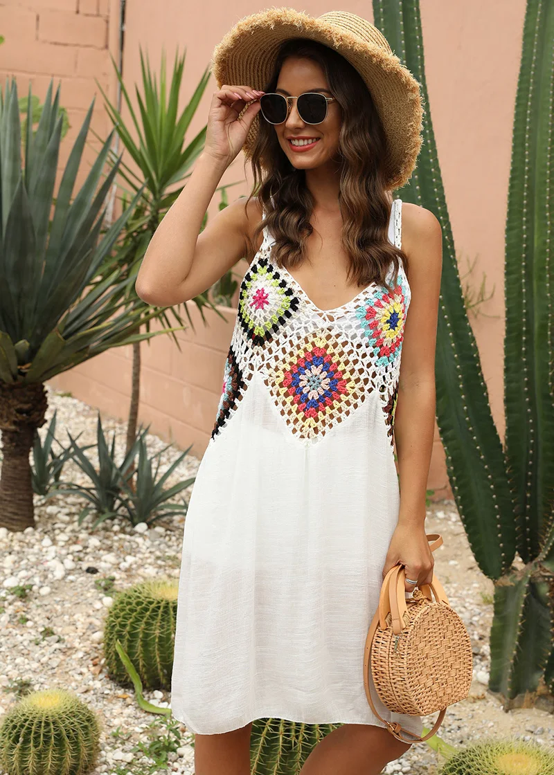 Платье в стиле бохо Fitshinling, вязаное крючком платье ручной работы, пикантное пляжное парео в стиле пэчворк с открытой спиной, винтажный летний сарафан, новинка 2021