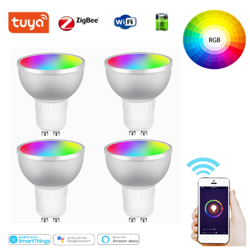 Умная Светодиодная лампа Zigbee 2021 Gu10, 5 Вт, RGB, работает с приложением Tuya SmartThings, голосовым управлением, Alexa Echo Google Home, 3,0