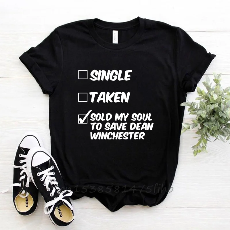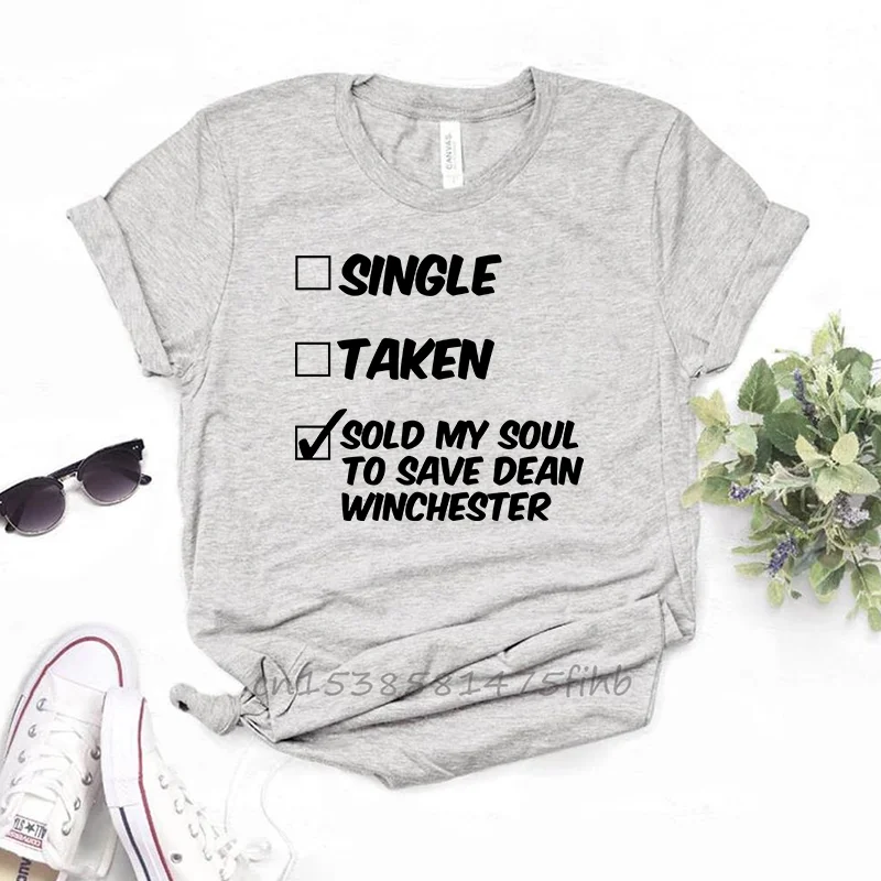 Синглом забавная футболка продаются души для того, чтобы сохранить Дин Винчестер Юмор футболки женские футболки Прямая доставка женские футболки