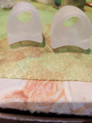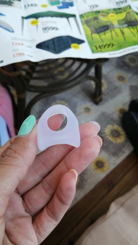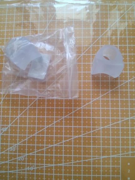 Заказ прибыл быстро, в хорошем состоянии. Продукт прозрачный силикон, приятный на ощупь, без запаха, очень гибкий. Я думаю, что это работает в случаях игрушки 2./3. Степень, когда жирный палец уже изменил свою естественную позицию. В начальном градусе это не так эффективно.
