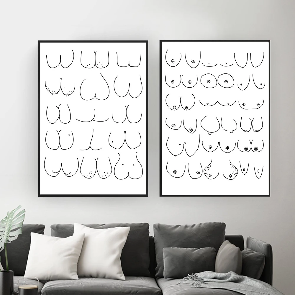 Забавные настенные картины в ванную комнату Красивая Обнаженная ягодица положительная линия Художественная Картина на холсте Феминистская иллюстрация плакаты домашний декор