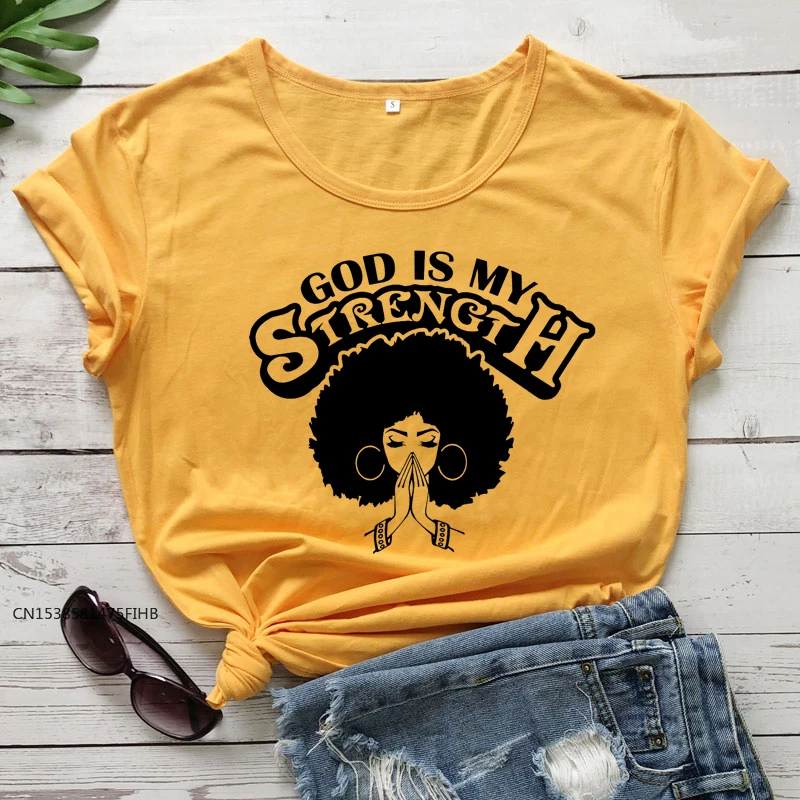 Женская футболка с надписью God Is My Strength, модная футболка с рисунком в стиле молитвы афро, ткань премиум-класса, футболка "Вера"