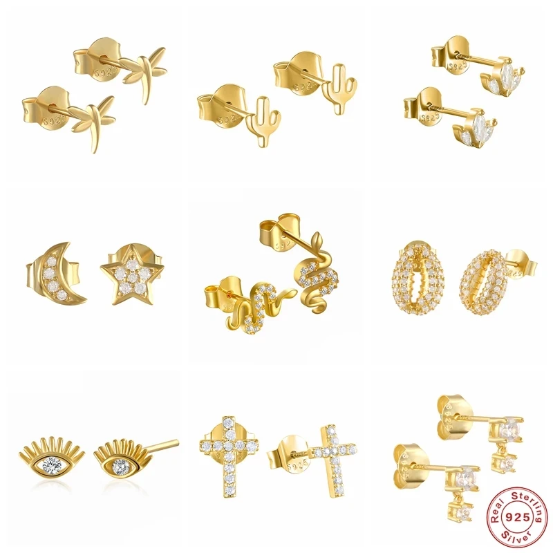 Aide 925 стерлингового серебра милые серьги-гвоздики в виде кактусов для женщин и девочек Циркон Луна, Звезды со змеиным рисунком стрекозы стержня уха, хорошее ювелирное изделие, подарок