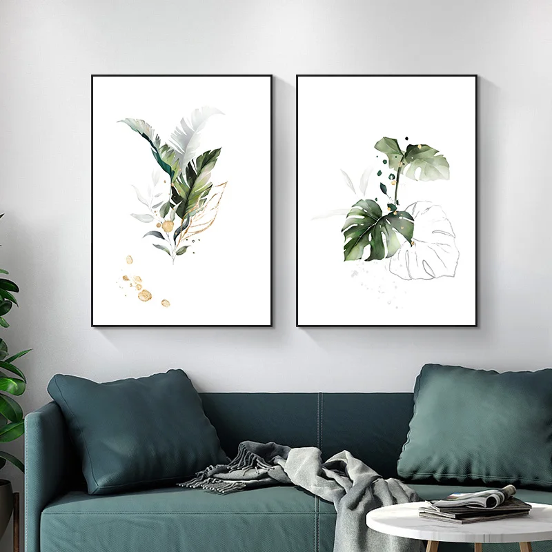 Плакат на холсте с акварельными растениями, листьями, ботаническим ...