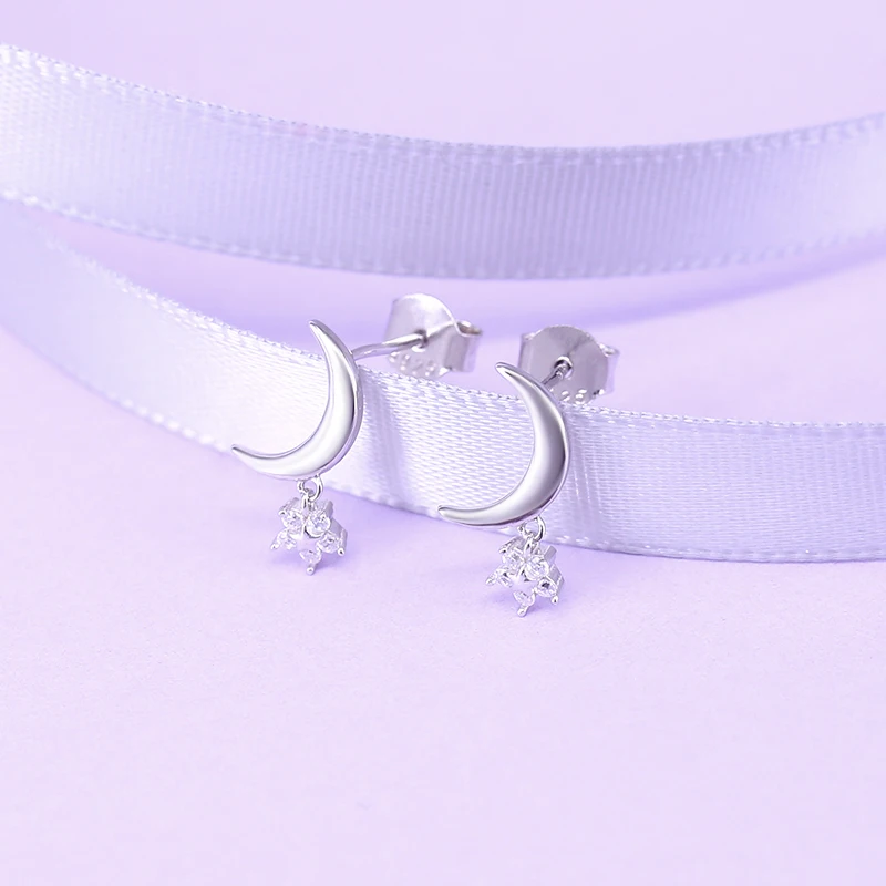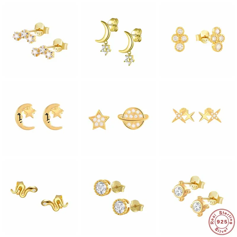 Aide 925 Циркон в форме сердца с рисунком Луна, звезды серьги-гвоздики "Планета" серьги для женщин обувь для девочек блестящие Украшенные стразами, под змеиную кожу, сережки-гвоздики вечерние ювелирные украшения