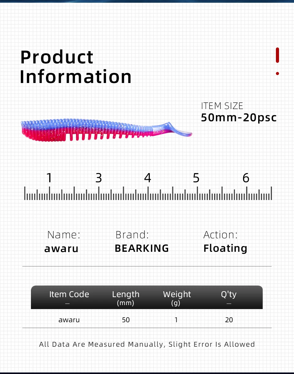 Рыболовные приманки 20 шт.пакет BEARKING, 50 мм, 1 г, Мягкая приманка, искусственная приманка, снасть для хищников, джеркбейты для щуки и окуня