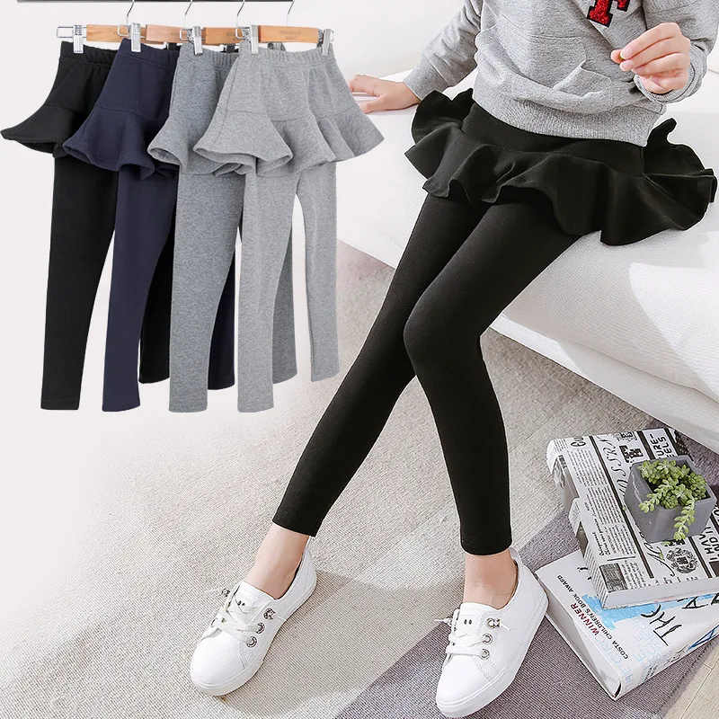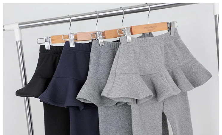 Юбка-брюки для девочек, Осень-зима 2021, утепленные хлопковые леггинсы с накладкой из двух брюк для девочек, детская одежда