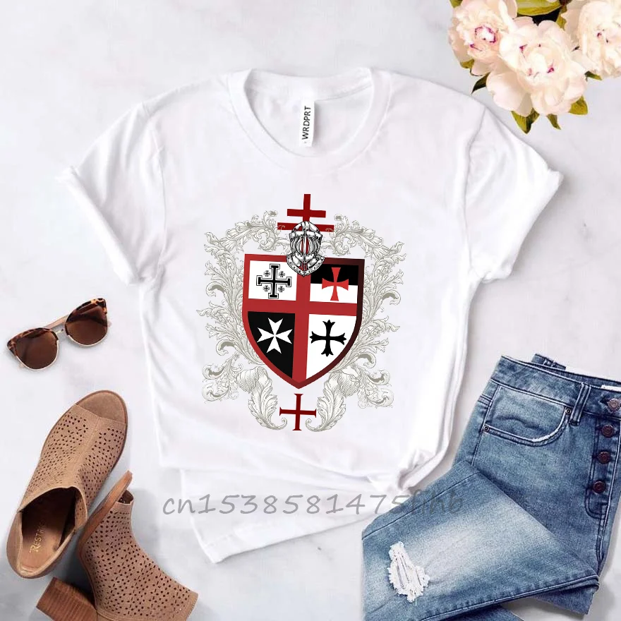 Тамплиеров футболка Шевалье Templiers короткий рукав женская футболка футболки Перевозка груза падения спортивные футболки женские футболки белого цвета