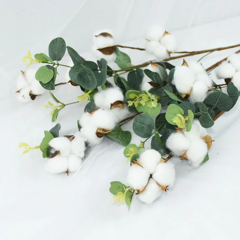 1 букет из высушенных на хлопковом основании искусственный эвкалипт наполнитель Цветочный декор в форме искусственных цветов, букет из хлопка DIY домашний Свадебный декор