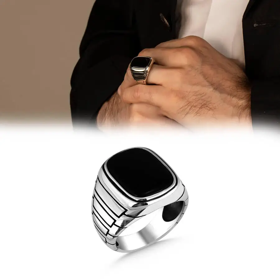 Серебряное прямоугольное мужское кольцо, искусственное кольцо, мужские ювелирные изделия ручной работы, винтажные серебряные аксессуары, Сделано в Турции