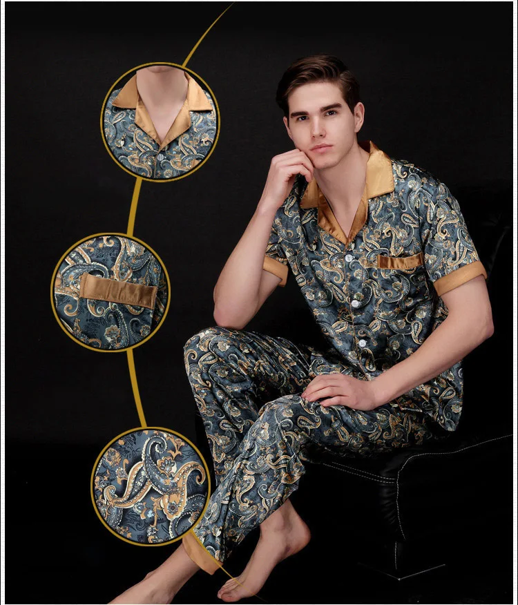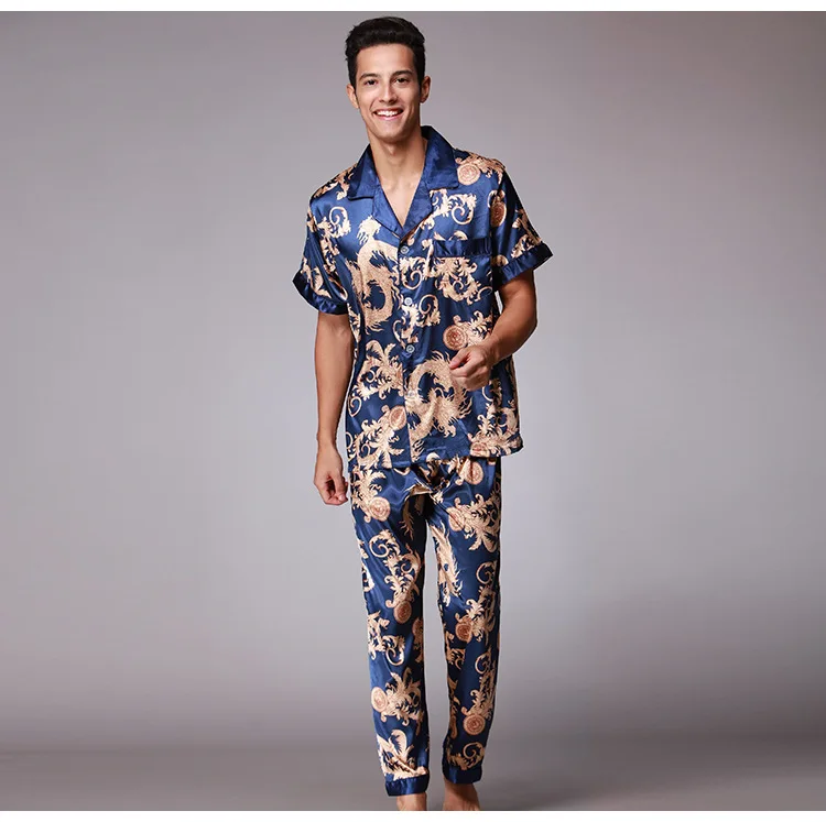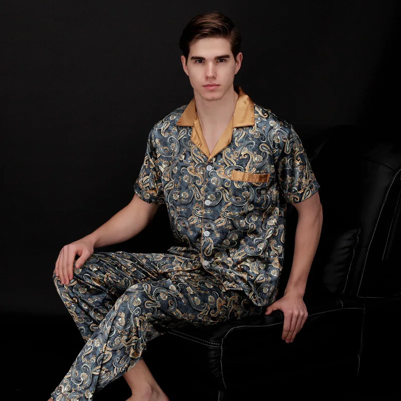 Шелковый халат для мужчин, пижама-кимоно, мужской банный халат, повседневный шелковый халат с изящным принтом, на лето