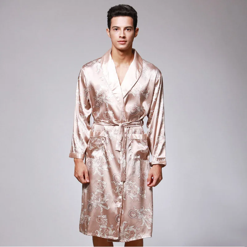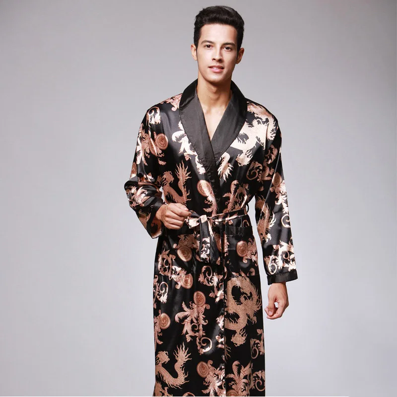 Для мужчин халат, халат атласные шелковые пижамы средней длины с дл...