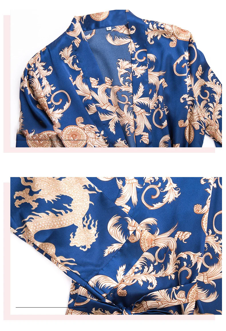 Халат-кимоно мужской размера плюс, Шелковый, с принтом дракона, с д...