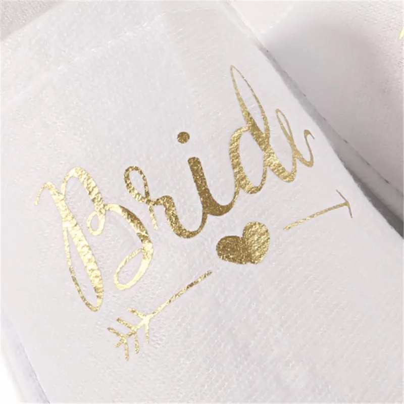Одноразовые мягкие тапочки с золотым алфавитом для невесты, свадебн...