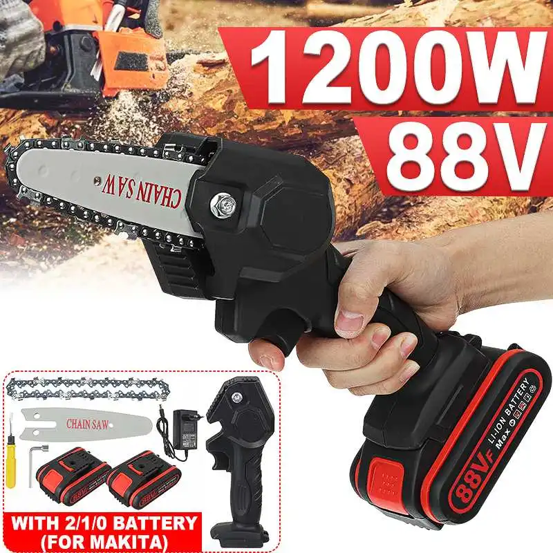Мини-пила цепная электрическая, 88 в, 1200 Вт, 4 дюйма, с 2 аккумуляторами