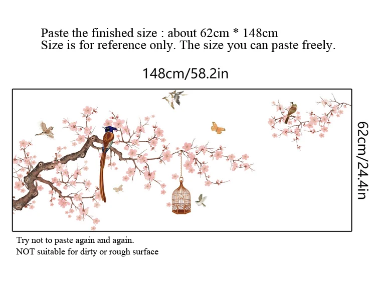 Наклейка на стену в китайском стиле с изображением цветов и птиц, декор для гостиной, дивана, наклейки для украшения дома