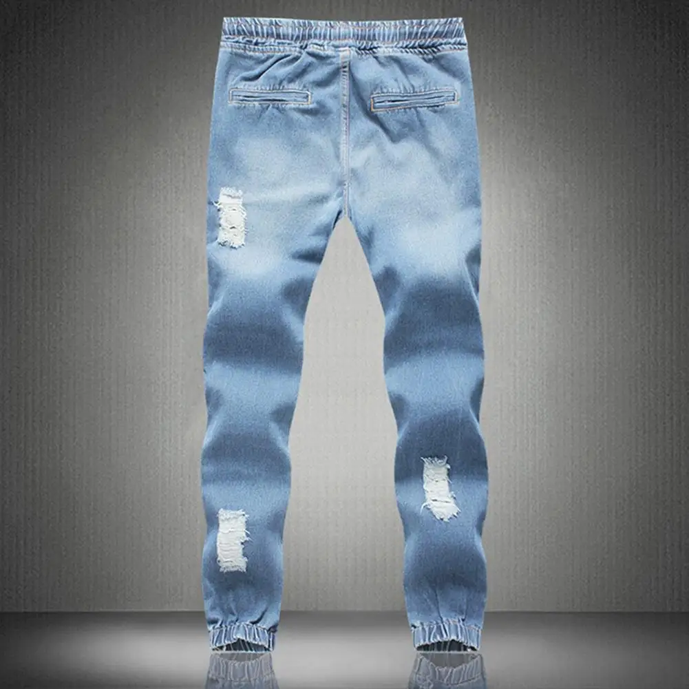 Мужские Модные джинсы со шнуровкой, тонкие джинсовые брюки до щиколотки для бега, повседневные штаны