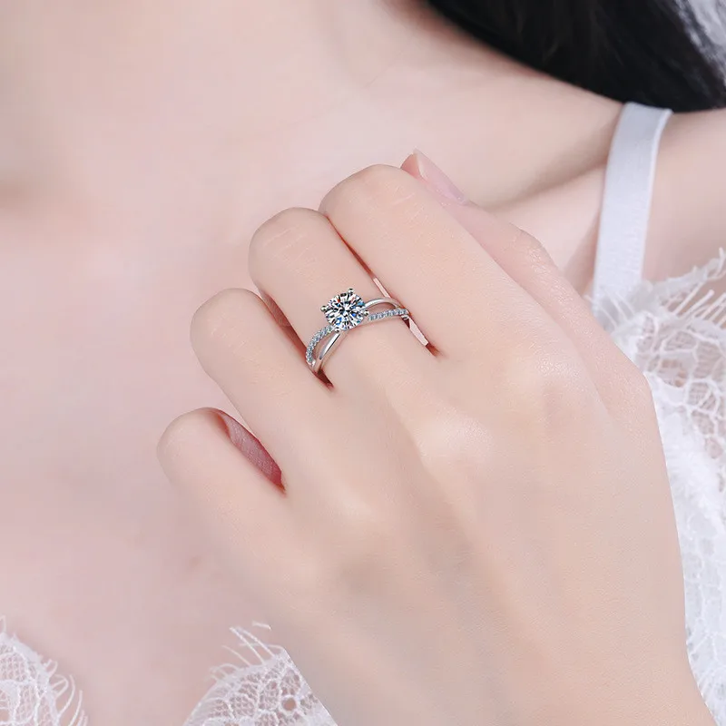 Кольцо женское из серебра 925 пробы с муассанитом 1-2 карата D, VVS1