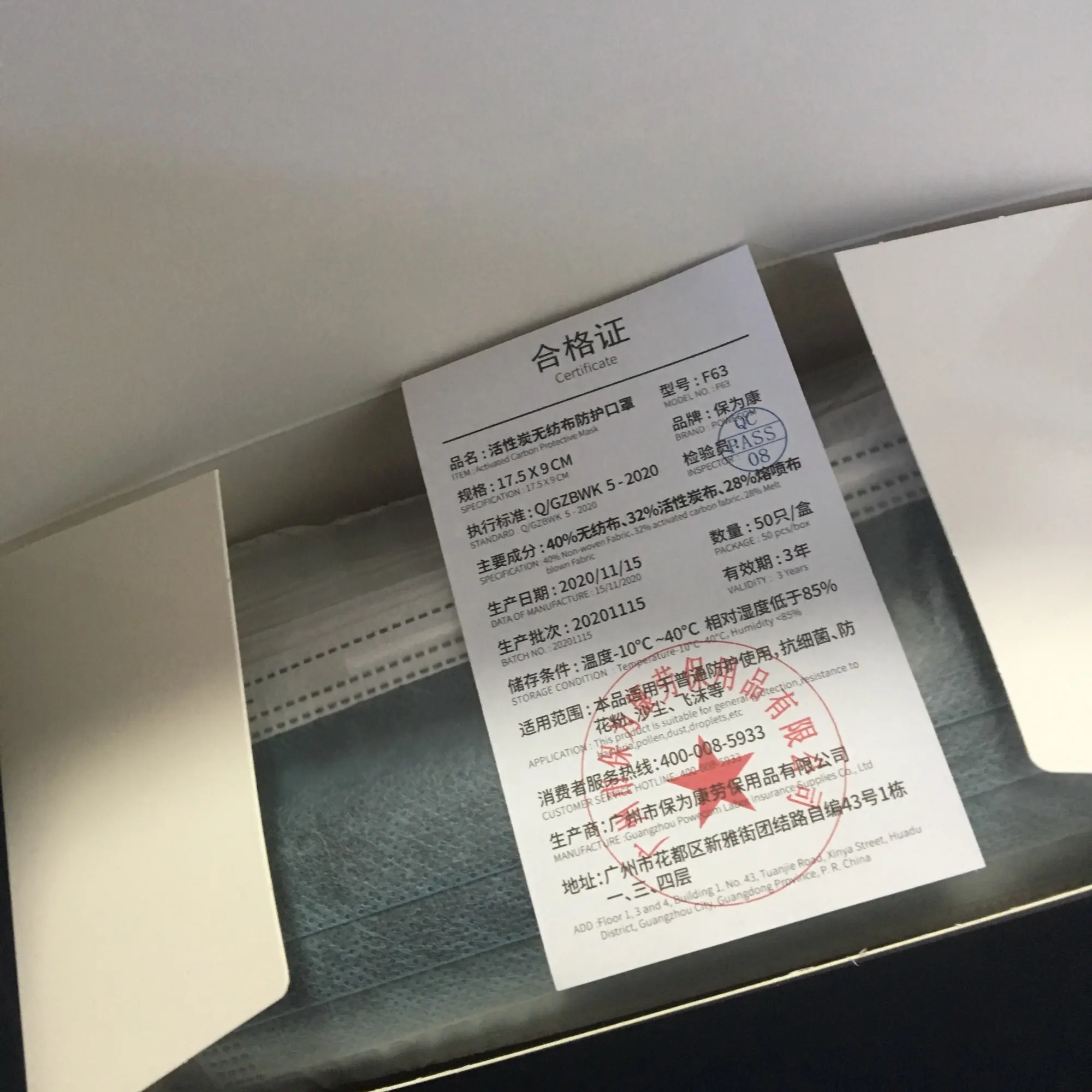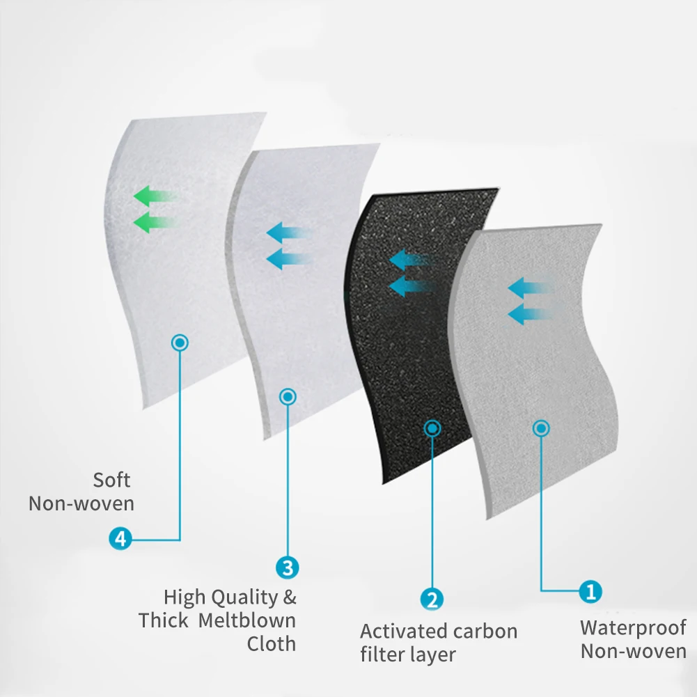30020015010050 шт. POWECOM одноразовая маска для лица, 4-слойная Нетканая маска с активированным углем, защитный респиратор, пылезащитные маски