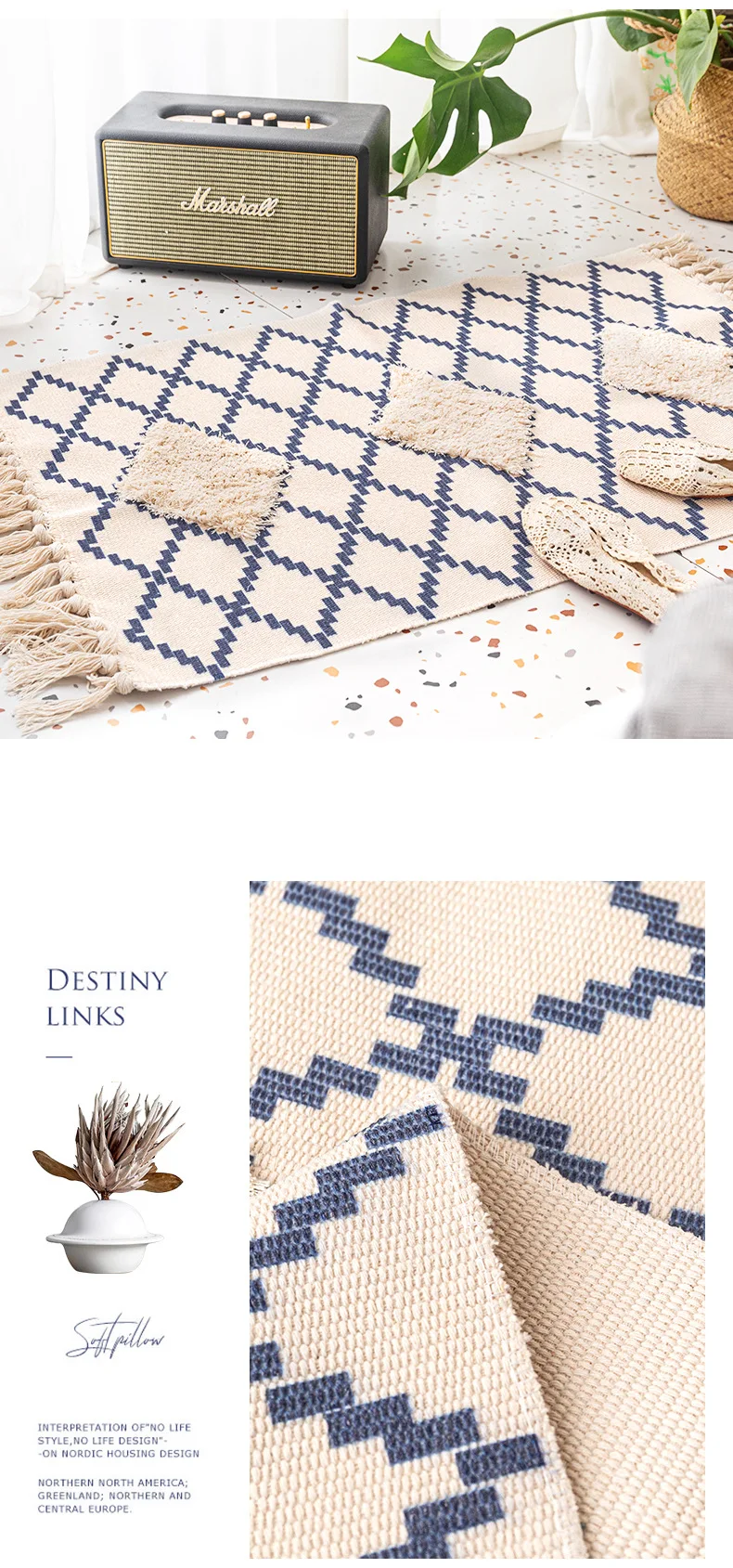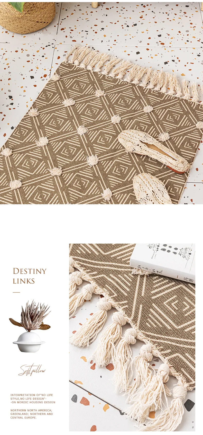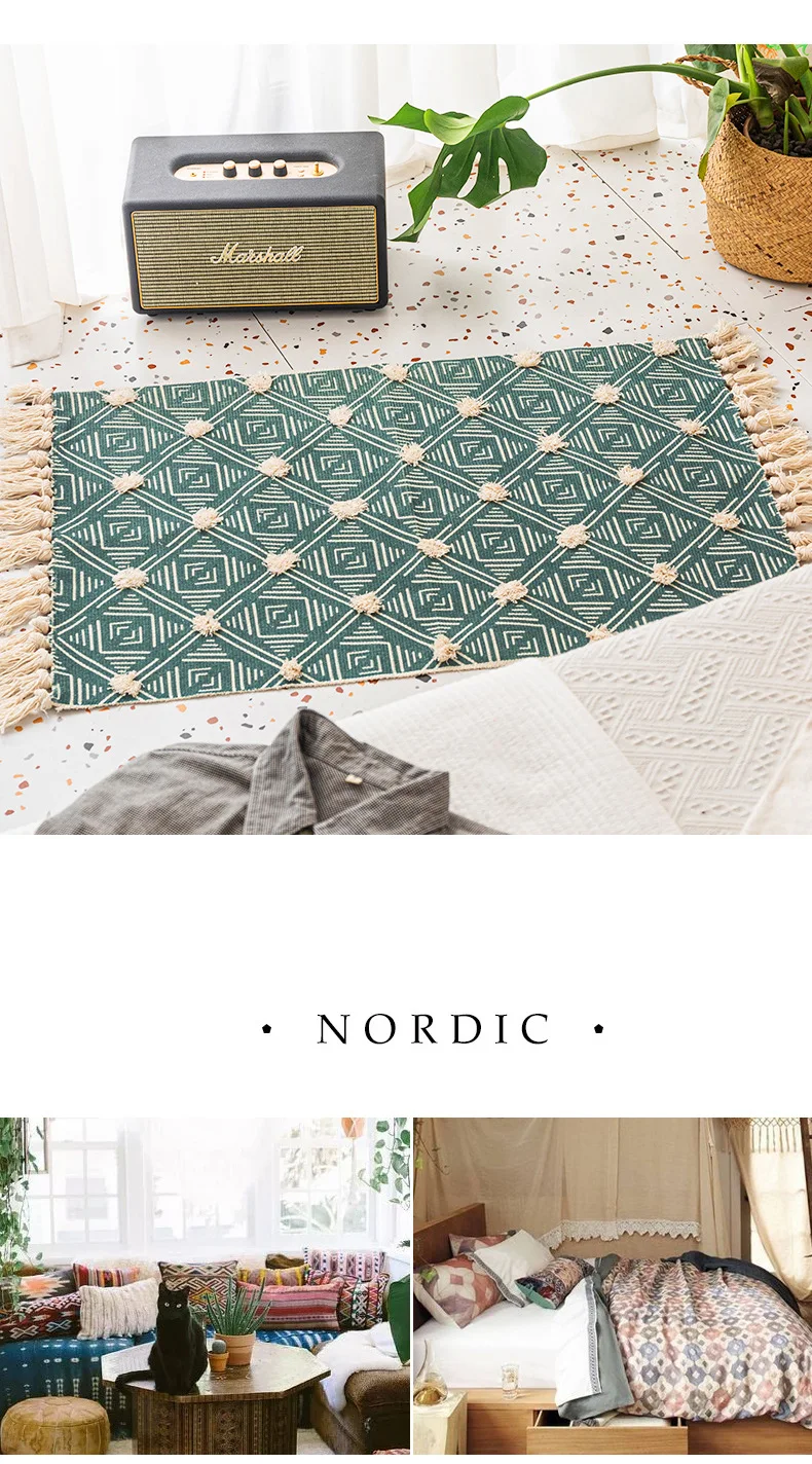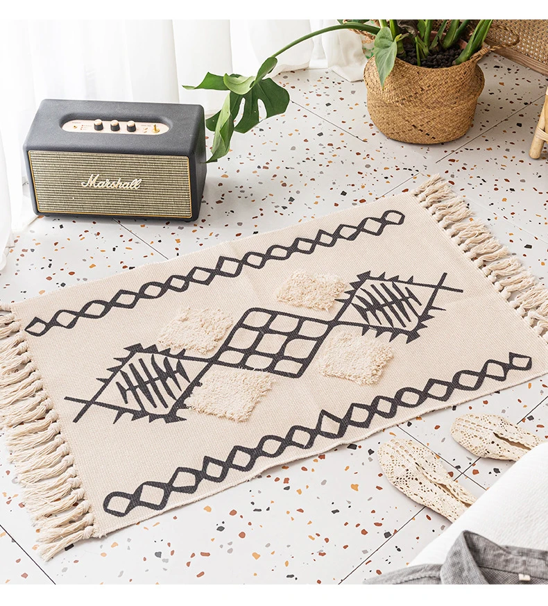 Хлопковый льняной ковер для гостиной, коврики с ручным плетением для спальни, Нескользящие напольные коврики, ворсовые коврики для входной двери, коврики для кухни
