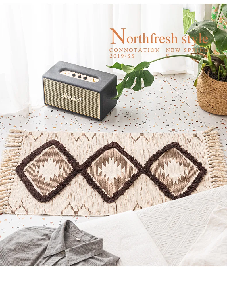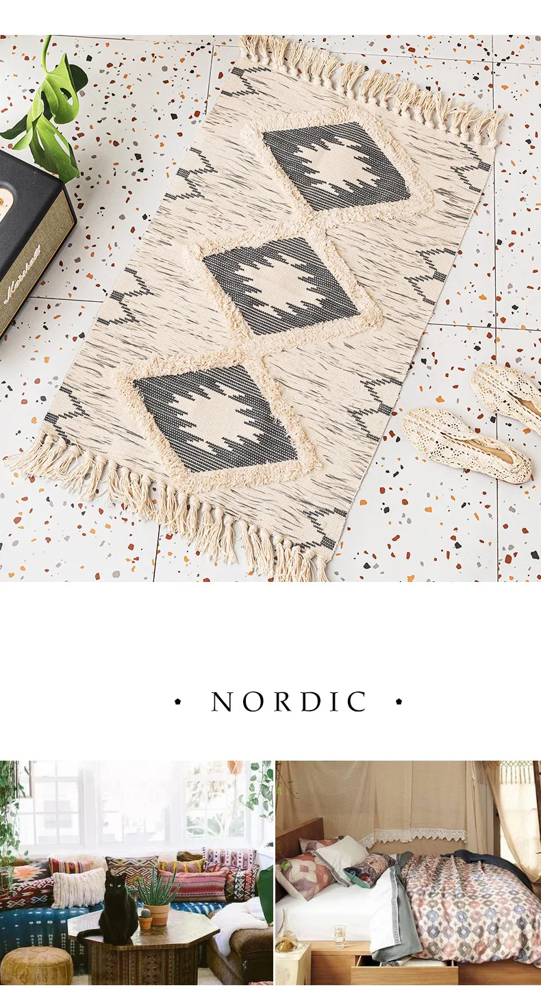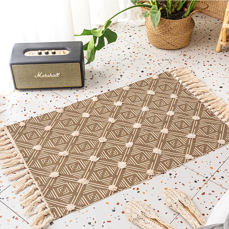 Хлопковый льняной ковер для гостиной, ручная вязка, коврики для спальни, Противоскользящие коврики, коврики для дверей, коврики для кухни