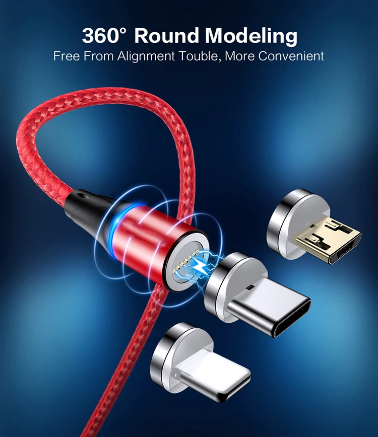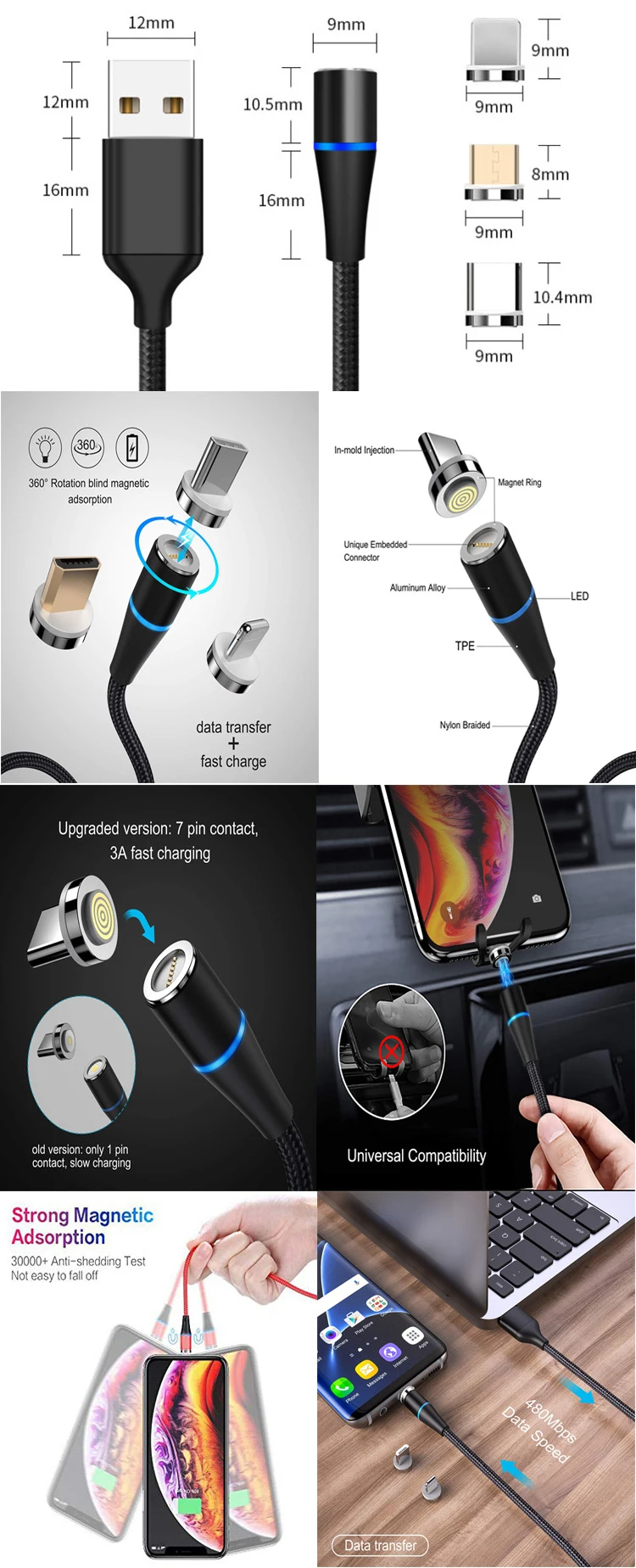 Магнитный кабель 360 , 3A, кабель для быстрой зарядки и передачи да...