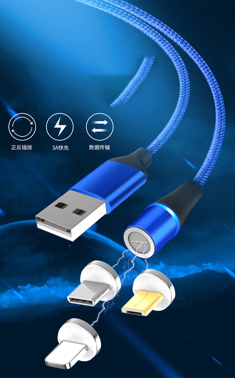 Магнитный кабель 3A для быстрой зарядки 3,0 Micro USB, зарядное устройство Type C, быстрая зарядка для iPhone 7 XSSamsung S8, магнитные кабели для передачи данных для телефона