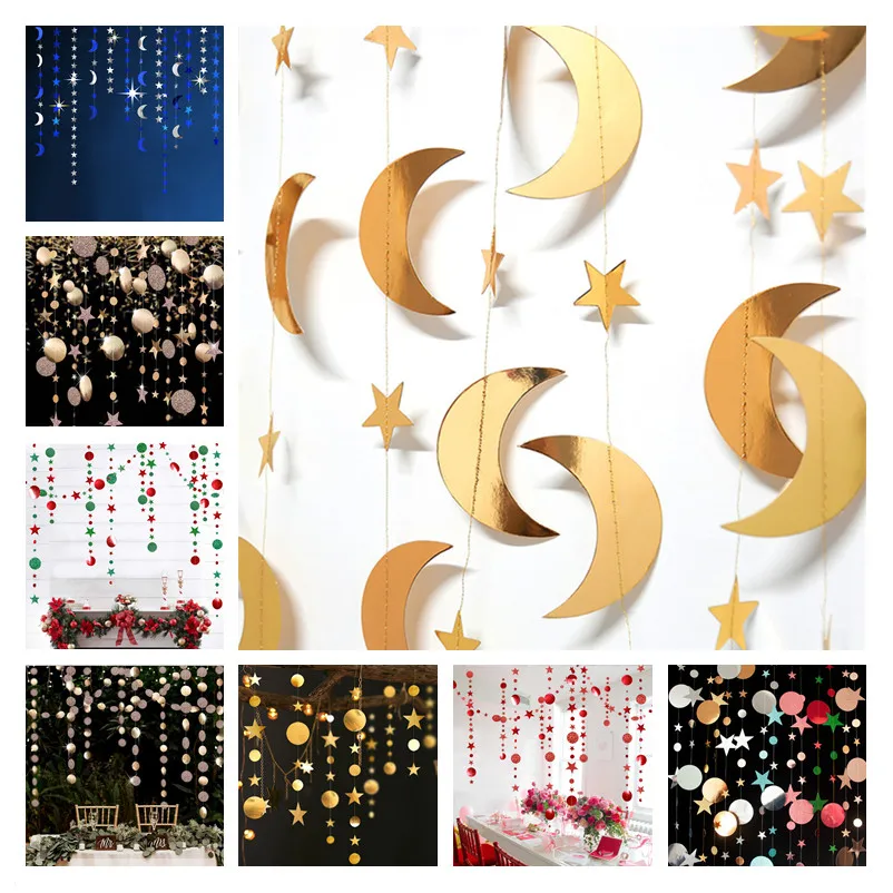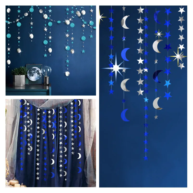 4 м Круглая Бумажная гирлянда с Луной и звездами, украшения для веч...