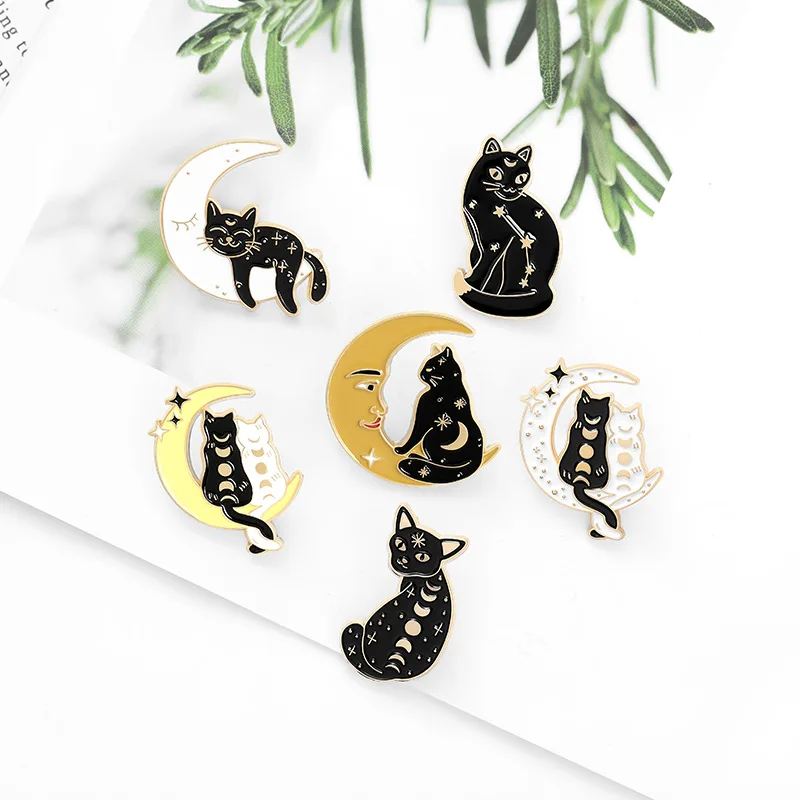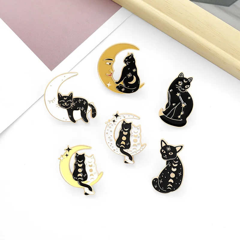 1 шт. эмалевые заколки с кошками на заказ Лунная фаза волшебник бро...
