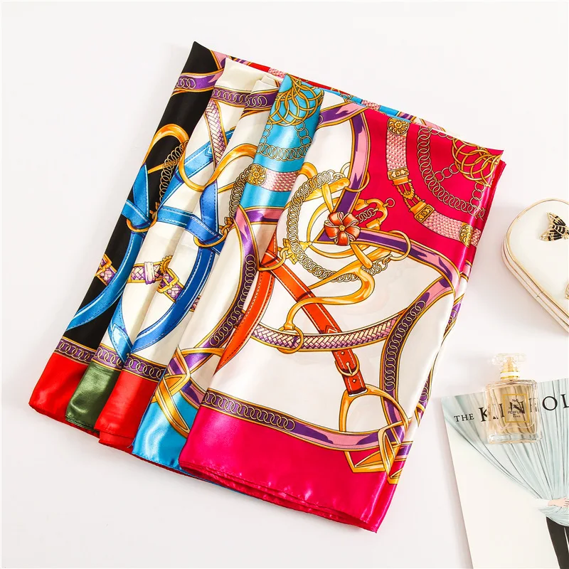 90*90 см мусульманский квадратный шелковый шарф женский шифоновый хиджаб шарфы женский атласный принт шали обертывание волос Головной Платок бандана пляжное парео