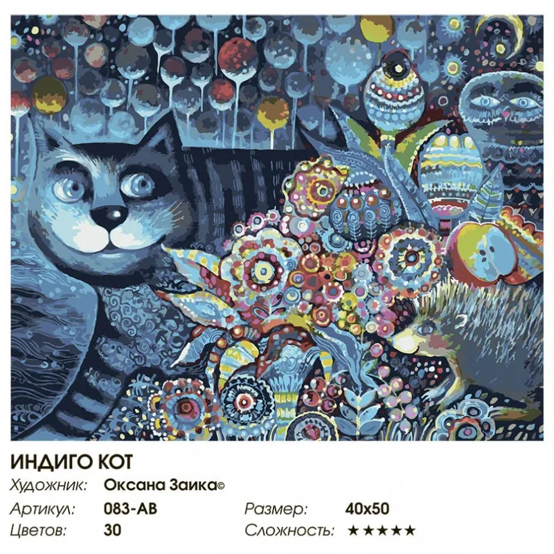 "Индиго кот" Живопись по номерам на холсте 40*50. Белоснежка. 083-АВ