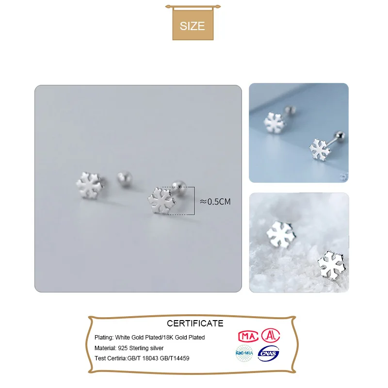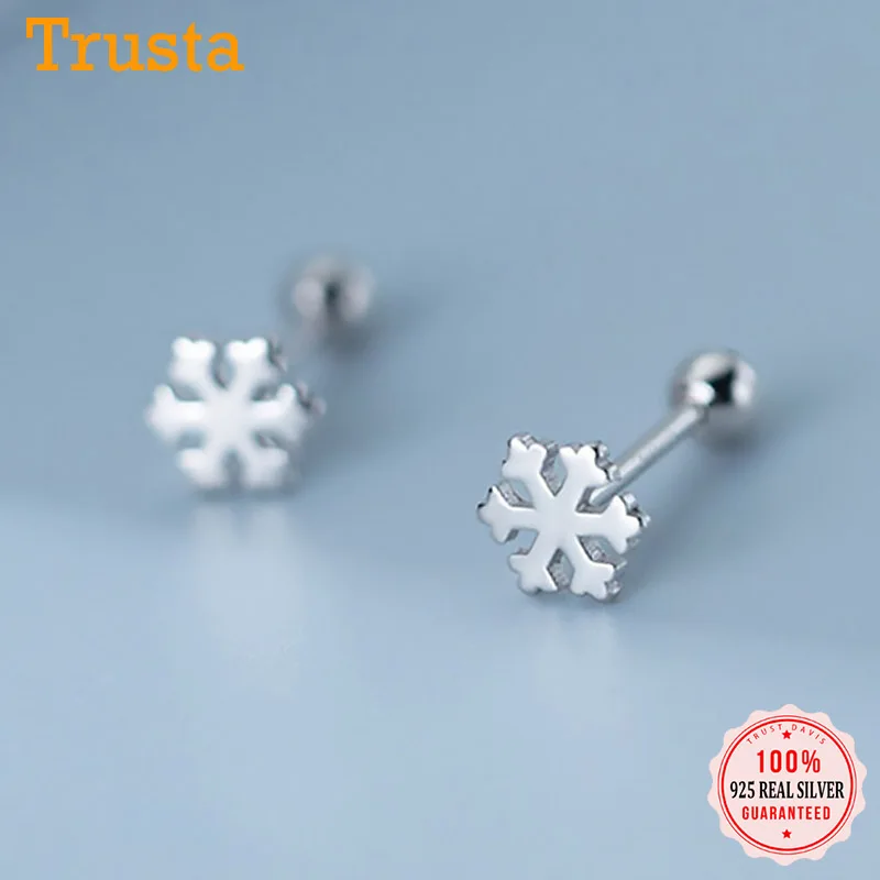 TrustDavis Настоящее серебро 925 пробы модные зимние снежинки бусины винт серьги-гвоздики для женщин День Святого Валентина ювелирные изделия DB380