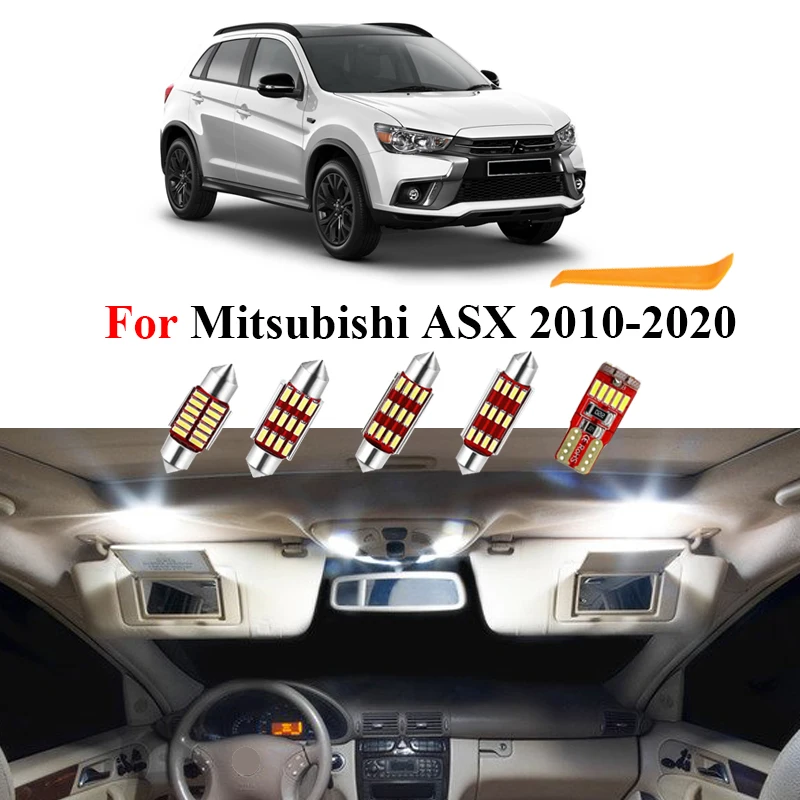 6 шт. светодиодные лампы для освещения салона автомобиля Комплект для Mitsubishi ASX 2010 2011 2012 -2018 2019 2020 карта багажник купол свет белый