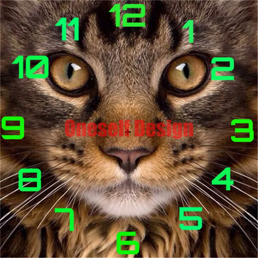 Популярная 5d алмазная картина с часами цветная кошка 5d алмазная в...